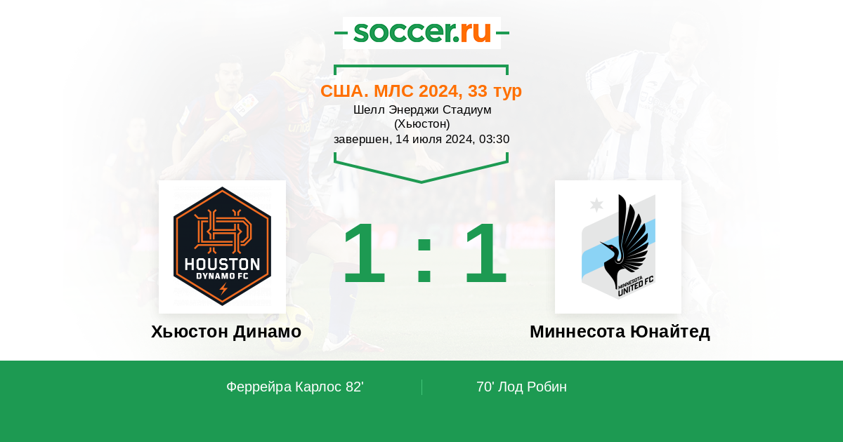 США. МЛС 24.07.2022 Хьюстон Динамо Логотип футбольный клуб Хьюстон Динамо 1:2 Логотип футбольный клуб Миннесота Юнайтед Миннесота Юнайтед