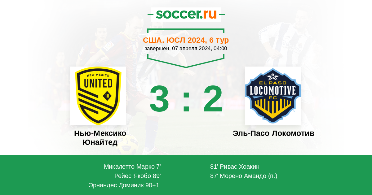 США. ЮСЛ 28.07.2024 Эль-Пасо Локомотив Логотип футбольный клуб Эль-Пасо Локомотив 1:2 Логотип футбольный клуб Нью-Мексико Юнайтед (Альбукерке) Нью-Мексико Юнайтед