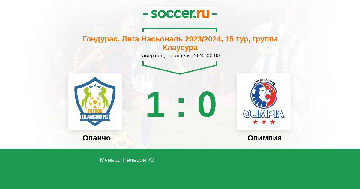 Гондурас. Лига Насьональ 18.02.2024 Олимпия Логотип футбольный клуб Олимпия (Тегусигальпа) 0:0 Логотип футбольный клуб Оланчо (Хутикальпа) Оланчо