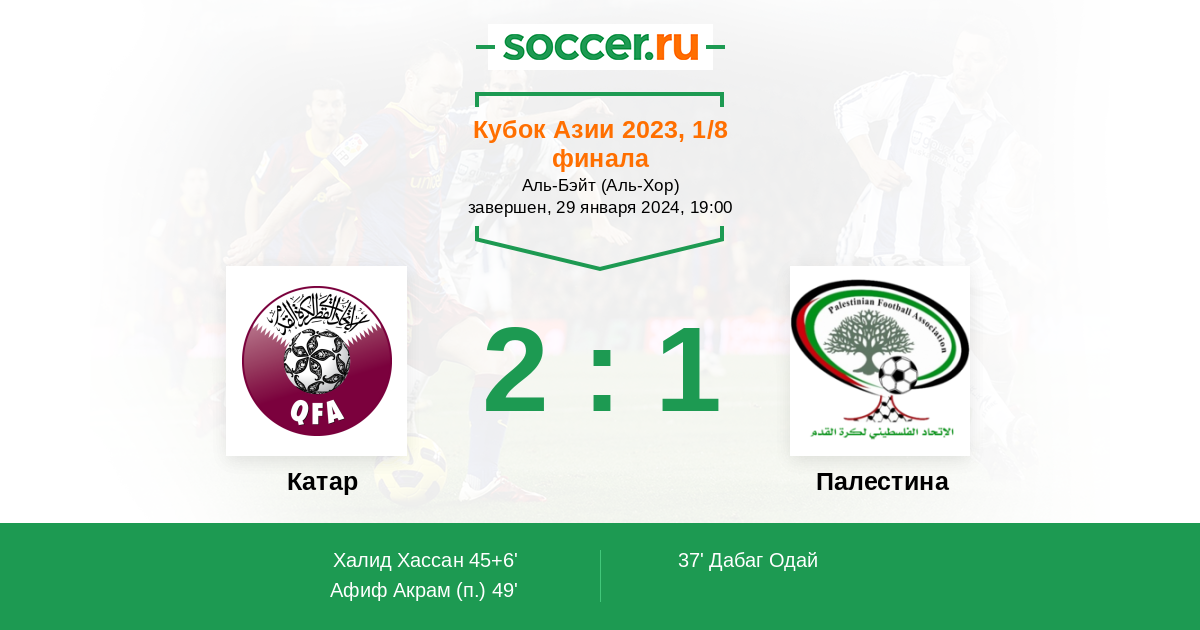 Крепкая оборона сборной Катара - залог успеха в этом матче. Они скорее всего не пропустят, а один или два мяча смогут забить. Надежды сборной Палестины только на нулевую ничью, но скорее всего они не сбудутся.
