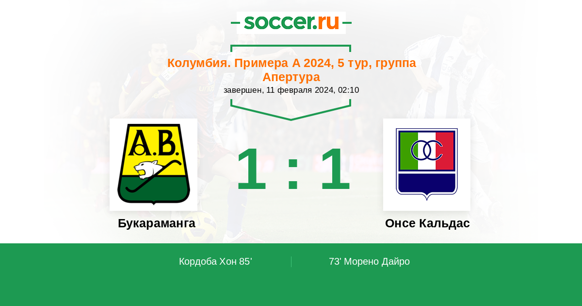 Колумбия. Примера А 10.02.2025 Онсе Кальдас Логотип футбольный клуб Онсе Кальдас (Манисалес) 2:1 Логотип футбольный клуб Букараманга Букараманга