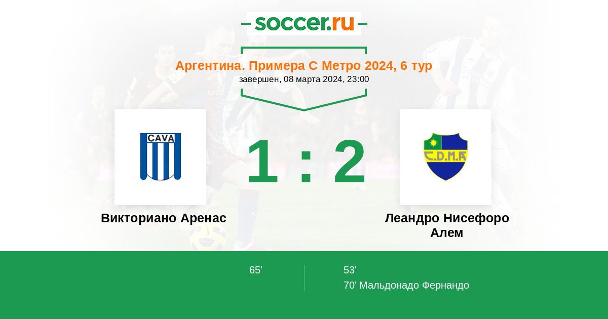 Аргентина. Примера С Метро 07.08.2021 Викториано Аренас Логотип футбольный клуб Викториано Аренас 3:0 Логотип футбольный клуб Леандро Нисефоро Алем (Буэнос-Айрес) Леандро Нисефоро Алем