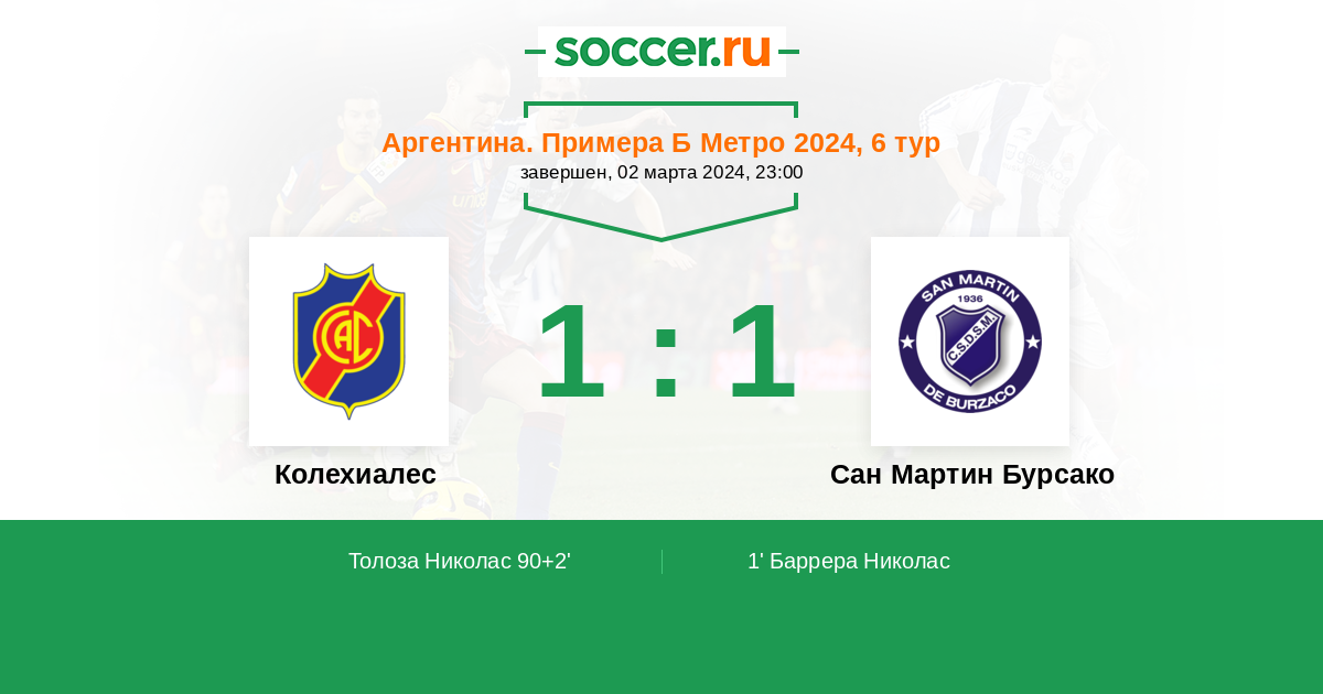 Матчи Аргентина. Примера Б Метро 2024