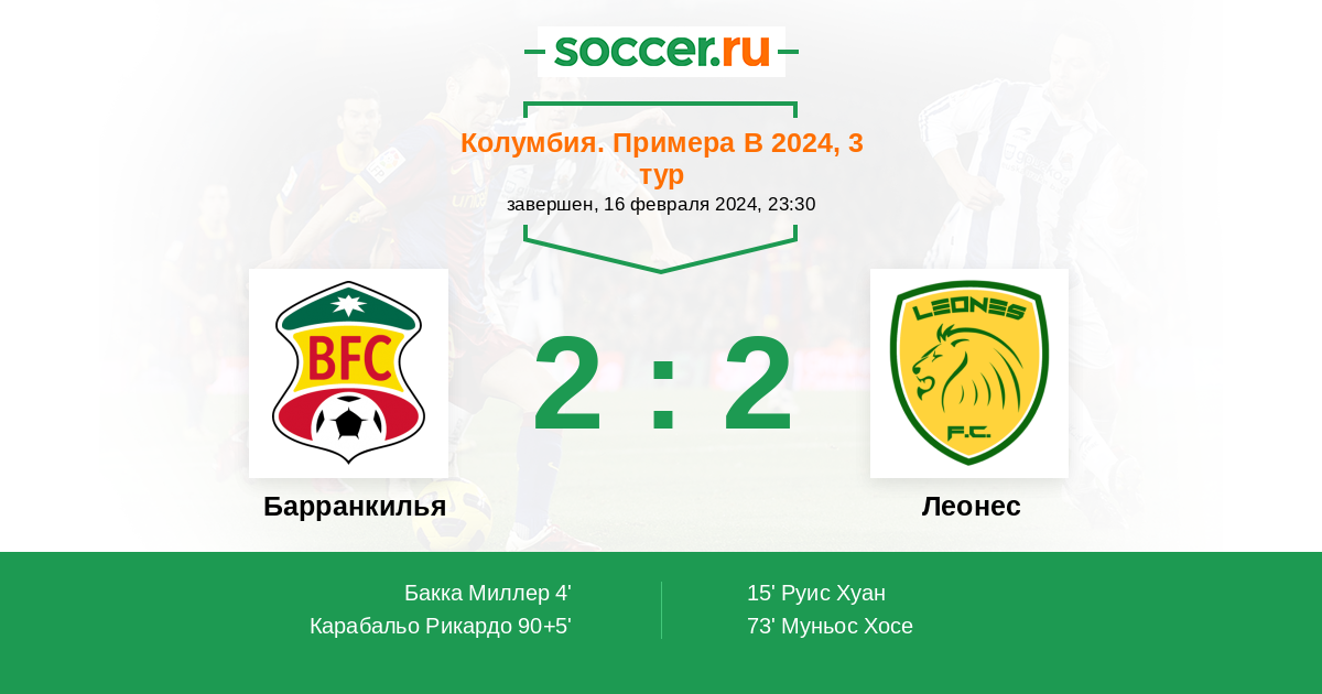 Колумбия. Примера B 19.04.2023 Барранкилья Логотип футбольный клуб Барранкилья 2:3 Логотип футбольный клуб Леонес (Итагуи) Леонес