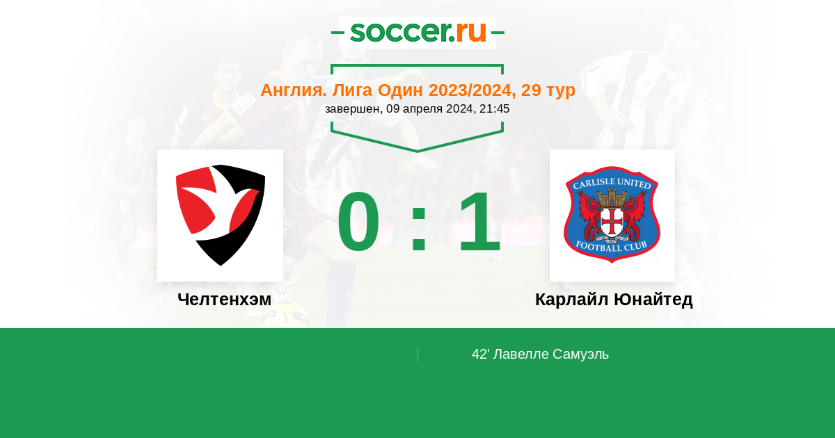 Англия. Вторая Футбольная Лига 27.04.2021 Челтенхэм Логотип футбольный клуб Челтенхэм 1:1 Логотип футбольный клуб Карлайл Юнайтед (Карлайсл) Карлайл Юнайтед
