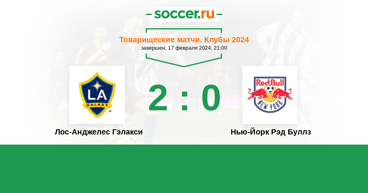 Товарищеские матчи. Клубы 15.02.2023 Нью-Йорк Рэд Буллз Логотип футбольный клуб Нью-Йорк Рэд Буллз 1:0 Логотип футбольный клуб Лос-Анджелес Гэлакси Лос-Анджелес Гэлакси
