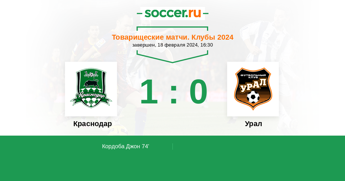 Россия. Кубок 28.02.2017 Урал Логотип футбольный клуб Урал (Екатеринбург) 3:3 (4:3) Логотип футбольный клуб Краснодар Краснодар