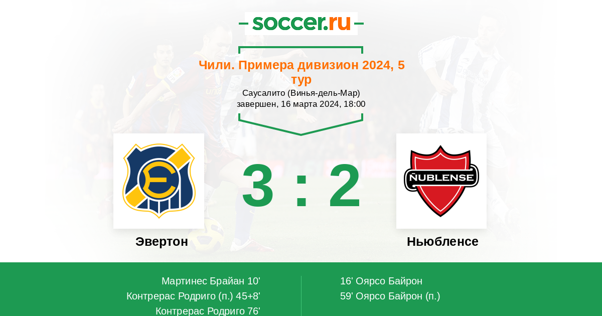 Чили. Примера дивизион 18.08.2024 Ньюбленсе Логотип футбольный клуб Ньюбленсе (Чильян) 1:1 Логотип футбольный клуб Эвертон (Винья-дель-Мар) Эвертон