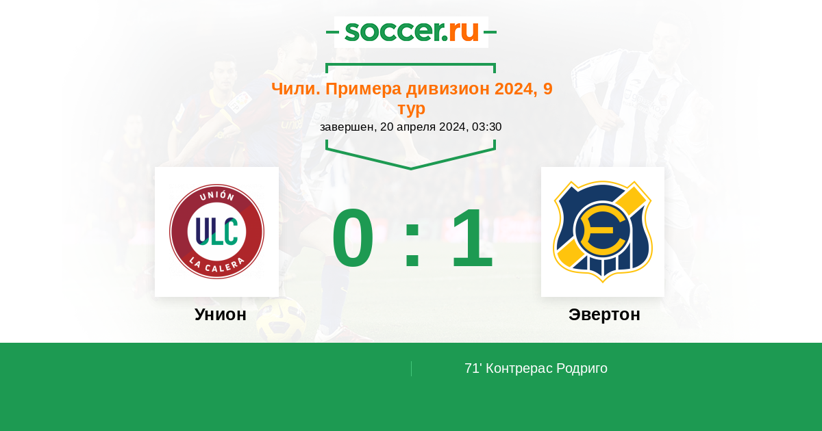 Чили. Примера дивизион 09.08.2021 Унион Логотип футбольный клуб Унион (Ла Калера) 1:0 Логотип футбольный клуб Эвертон (Винья-дель-Мар) Эвертон