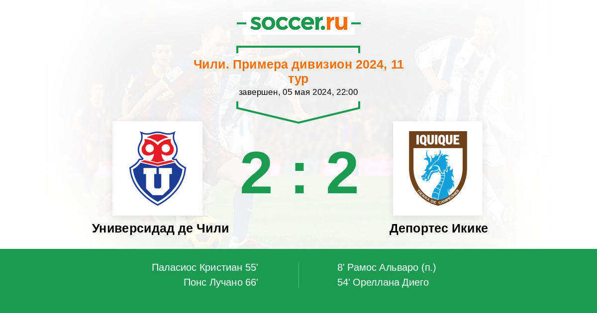 Чили. Примера дивизион 01.10.2011 Универсидад де Чили Логотип футбольный клуб Универсидад де Чили (Сантьяго) 2:2 Логотип футбольный клуб Депортес Икике Депортес Икике