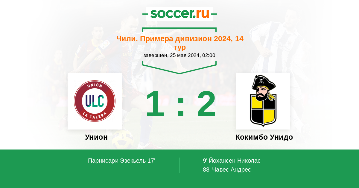 Чили. Примера дивизион 14.05.2023 Унион Логотип футбольный клуб Унион (Ла Калера) 1:2 Логотип футбольный клуб Кокимбо Унидо Кокимбо Унидо