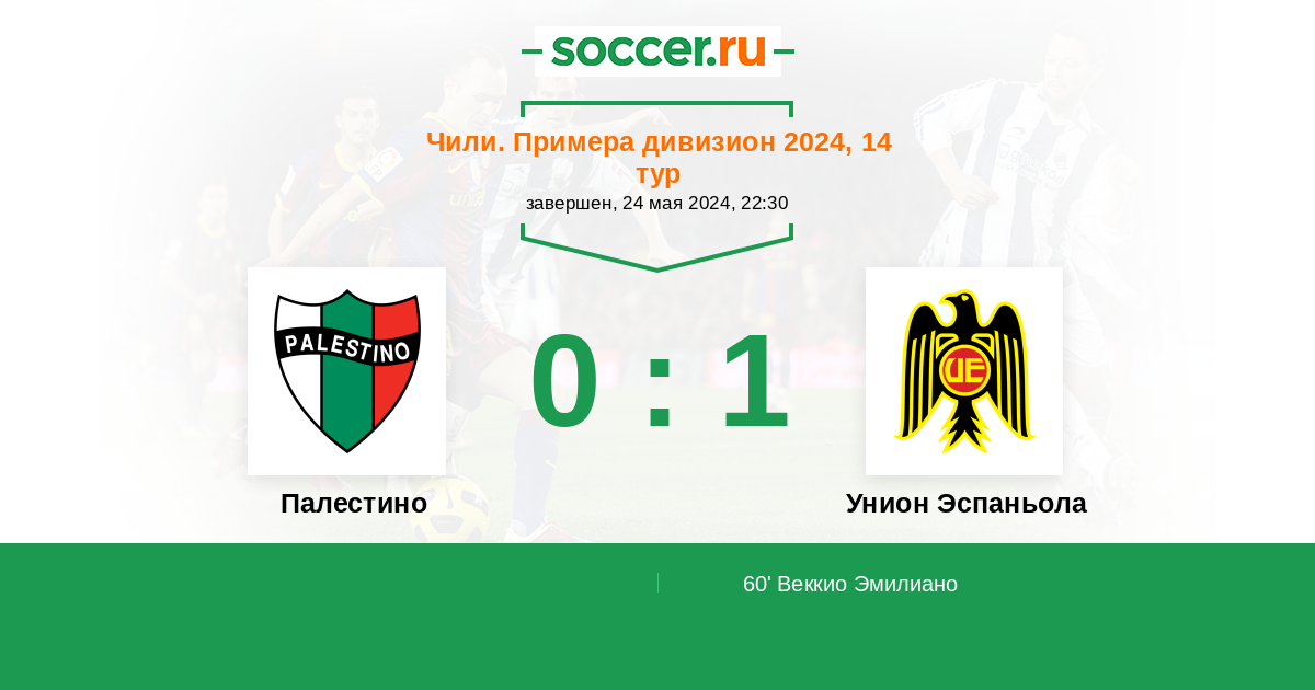 Чили. Примера дивизион 26.03.2014 Палестино Логотип футбольный клуб Палестино (Сантьяго) 1:2 Логотип футбольный клуб Унион Эспаньола (Сантьяго) Унион Эспаньола