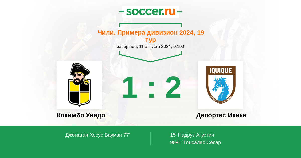 Чили. Примера дивизион 03.08.2019 Депортес Икике Логотип футбольный клуб Депортес Икике 0:1 Логотип футбольный клуб Кокимбо Унидо Кокимбо Унидо