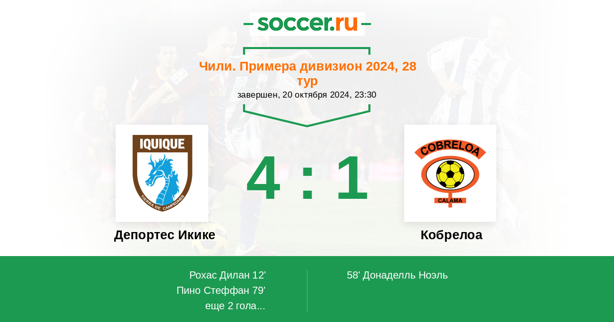 Чили. Примера В 04.05.2023 Кобрелоа Логотип футбольный клуб Кобрелоа (Калама) 1:0 Логотип футбольный клуб Депортес Икике Депортес Икике