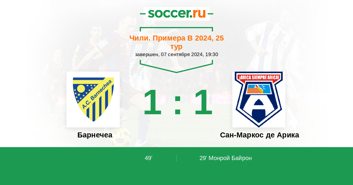 Чили. Примера В 09.09.2020 Барнечеа Логотип футбольный клуб Барнечеа (Сантьяго) 2:1 Логотип футбольный клуб Сан-Маркос де Арика Сан-Маркос де Арика