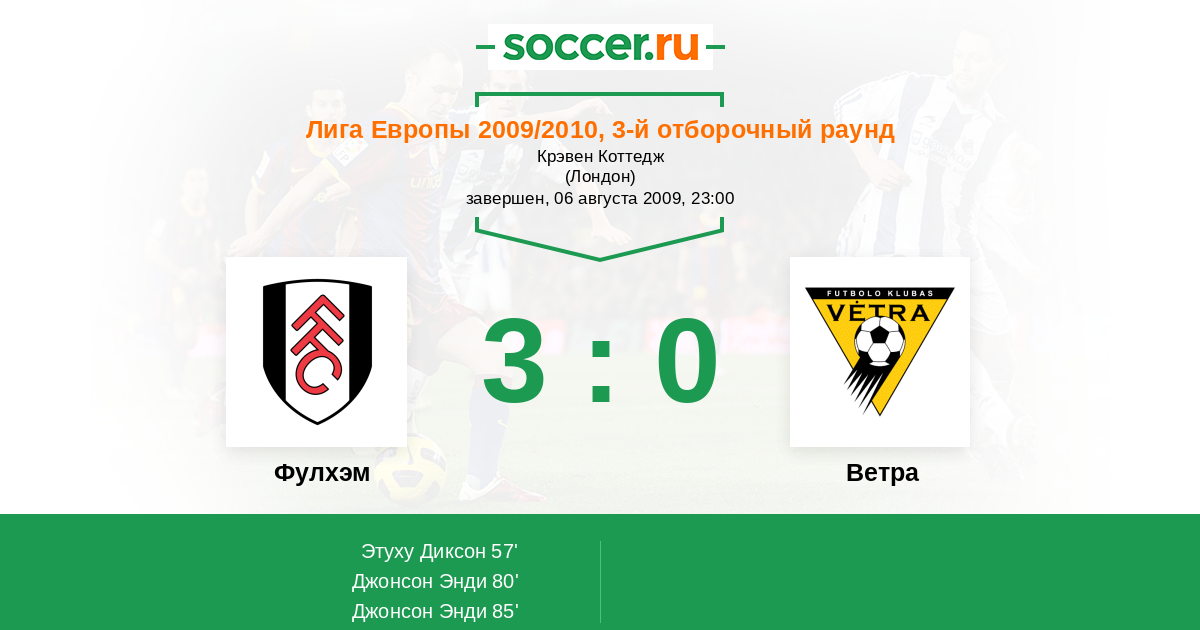 Фулхэм 3:0 0:0 3:0