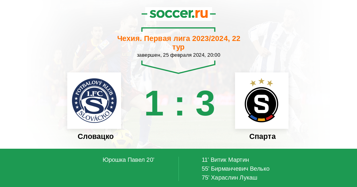 Чехия. Первая Лига 17.04.2022 Спарта Логотип футбольный клуб Спарта (Прага) 3:1 Логотип футбольный клуб Словацко (Угерске-Градиште) Словацко
