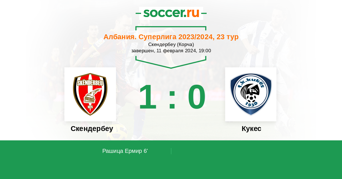Албания. Суперлига 23.09.2023 Скендербеу Логотип футбольный клуб Скендербеу (Корча) 0:1 Логотип футбольный клуб Кукес Кукес