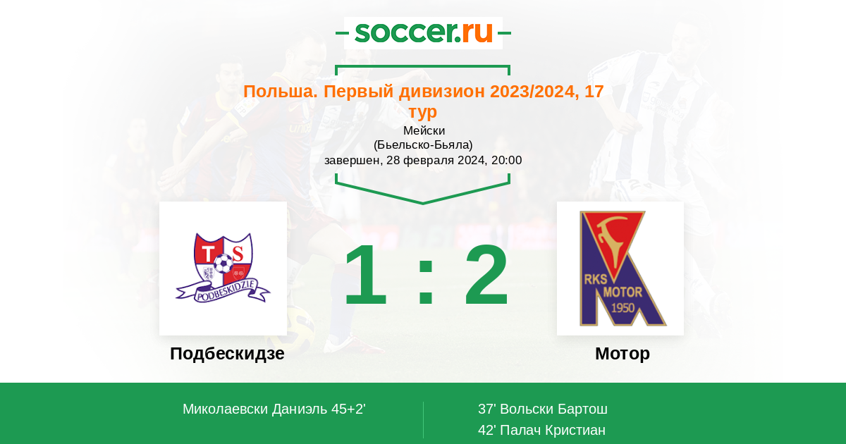 Подбескидзе 1:2 0:0 1:2