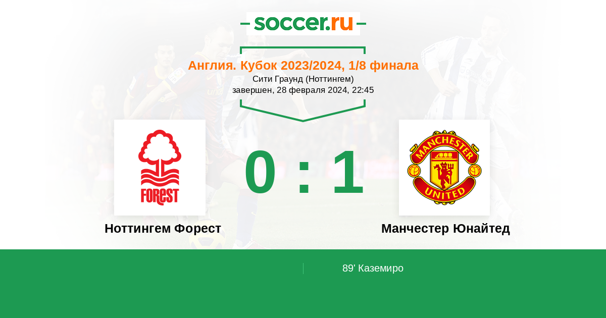 Англия. Кубок Лиги 25.01.2023 Ноттингем Форест Логотип футбольный клуб Ноттингем Форест 0:3 Логотип футбольный клуб Манчестер Юнайтед Манчестер Юнайтед