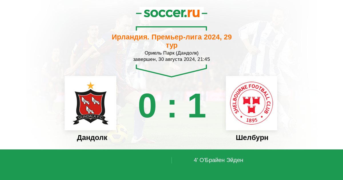 Ирландия. Премьер-лига 07.06.2024 Шелбурн Логотип футбольный клуб Шелбурн (Драмкондра) 1:0 Логотип футбольный клуб Дандолк Дандолк