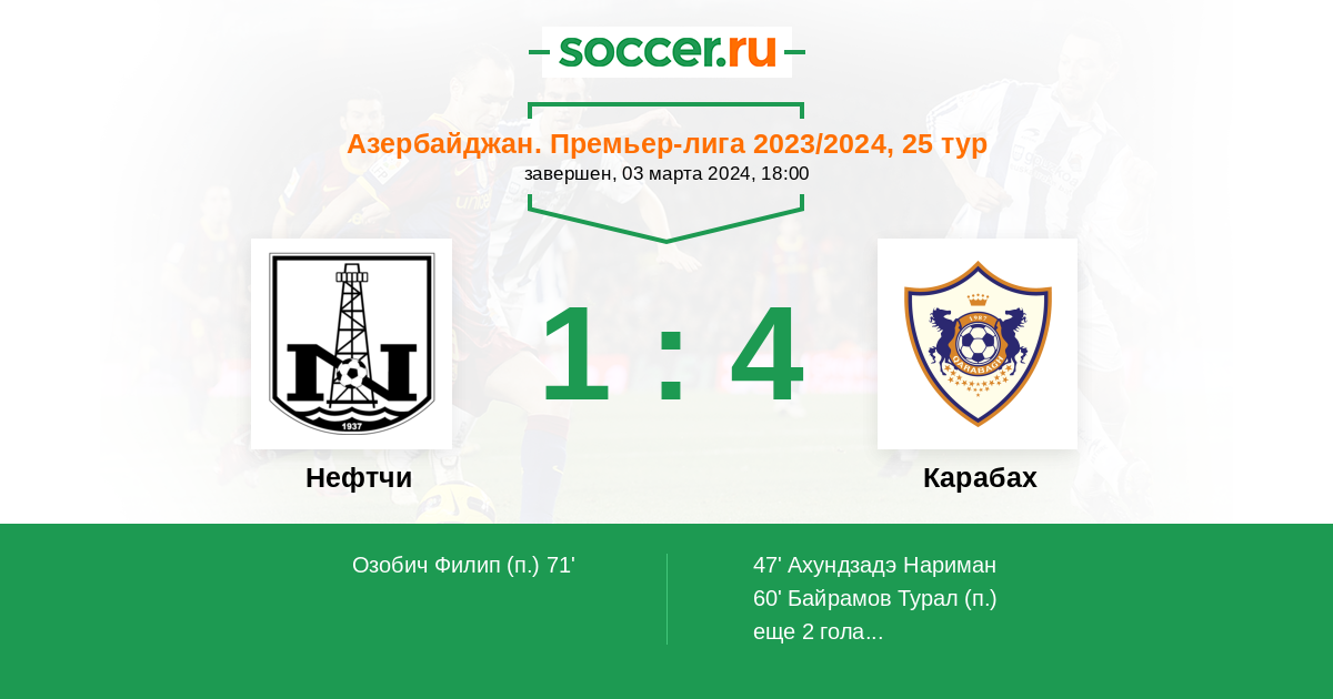 Азербайджан. Премьер-Лига 04.05.2024 Карабах Логотип футбольный клуб Карабах (Агдам) 5:0 Логотип футбольный клуб Нефтчи (Баку) Нефтчи
