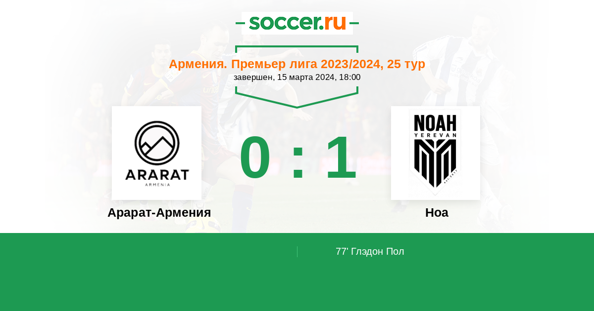 Армения. Премьер-лига 02.04.2023 Арарат-Армения Логотип футбольный клуб Арарат-Армения (Ереван) 3:0 Логотип футбольный клуб Ноа (Ереван) Ноа