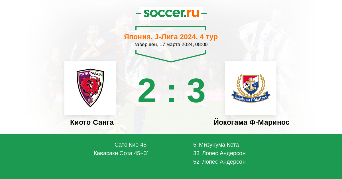 Япония. J-Лига 1 07.05.2023 Йокогама Ф-Маринос Логотип футбольный клуб Йокогама Ф-Маринос 4:1 Логотип футбольный клуб Киото Санга Киото Санга