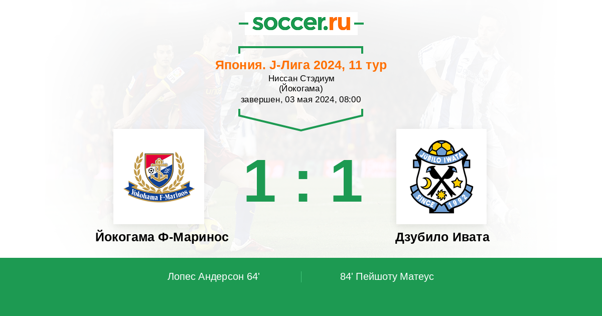 Япония. J-Лига 1 02.05.2018 Йокогама Ф-Маринос Логотип футбольный клуб Йокогама Ф-Маринос 1:3 Логотип футбольный клуб Дзубило Ивата Дзубило Ивата