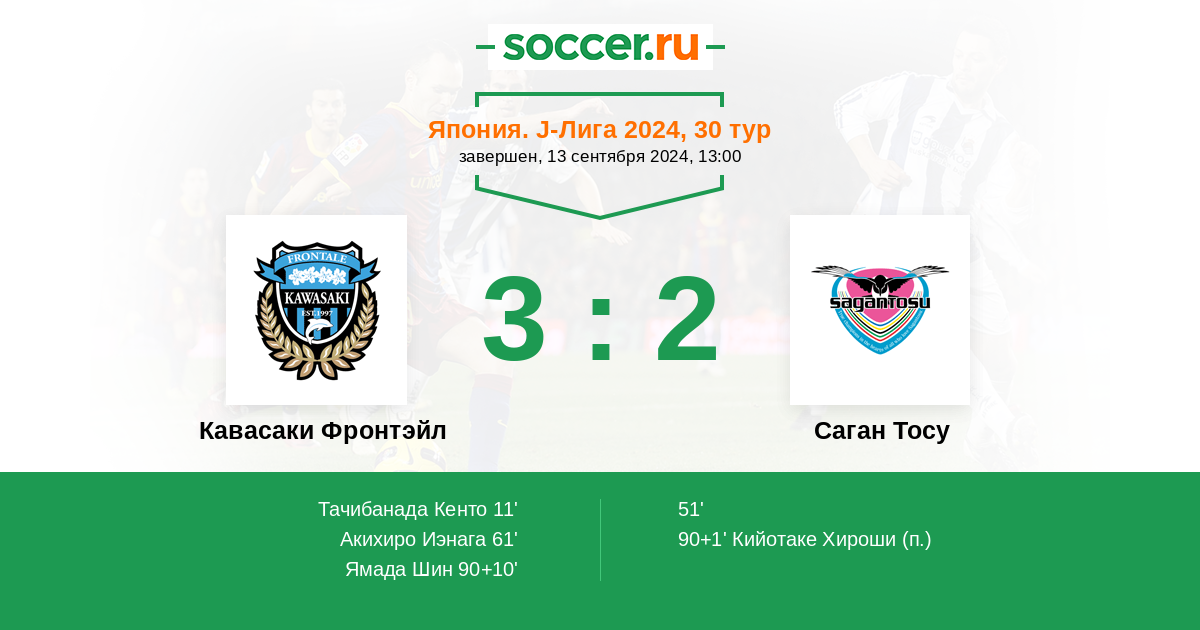 Япония. J-Лига 1 15.05.2024 Саган Тосу Логотип футбольный клуб Саган Тосу 5:2 Логотип футбольный клуб Кавасаки Фронтэйл Кавасаки Фронтэйл
