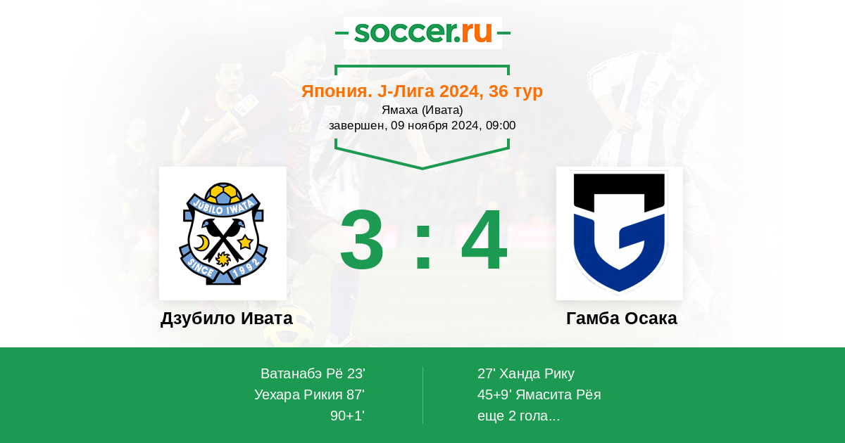 Япония. J-Лига 1 04.06.2017 Дзубило Ивата Логотип футбольный клуб Дзубило Ивата 3:0 Логотип футбольный клуб Гамба Осака Гамба Осака