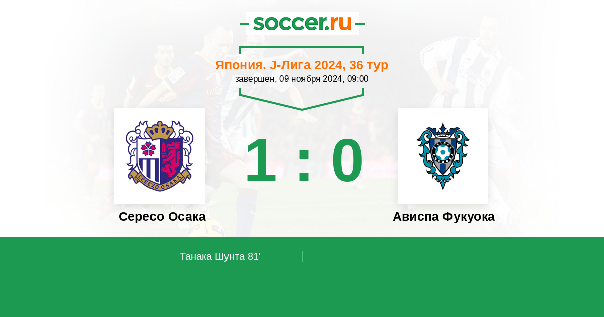 Япония. J-Лига 1 30.06.2023 Сересо Осака Логотип футбольный клуб Сересо Осака 0:1 Логотип футбольный клуб Ависпа Фукуока Ависпа Фукуока