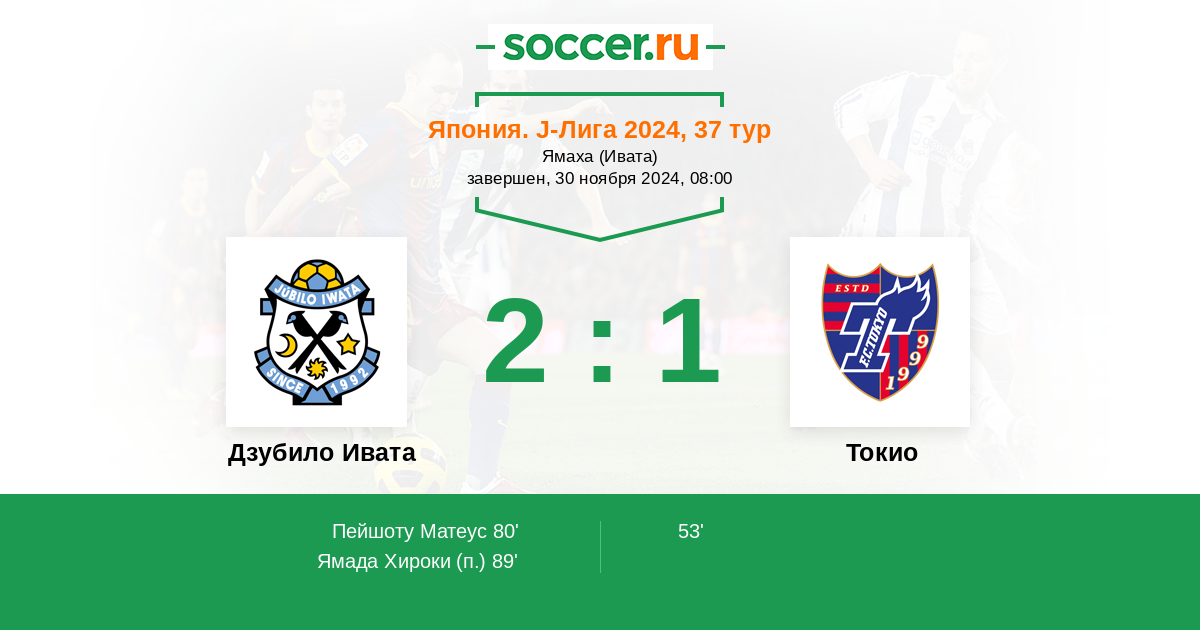 Япония. J-Лига 1 09.11.2019 Дзубило Ивата Логотип футбольный клуб Дзубило Ивата 0:1 Логотип футбольный клуб Токио Токио