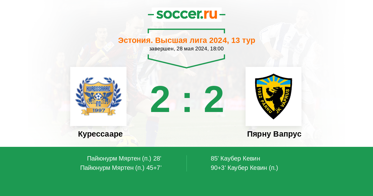 Эстония. Высшая лига 01.06.2025 Пярну Вапрус Логотип футбольный клуб Пярну Вапрус 2:1 Логотип футбольный клуб Курессааре Курессааре