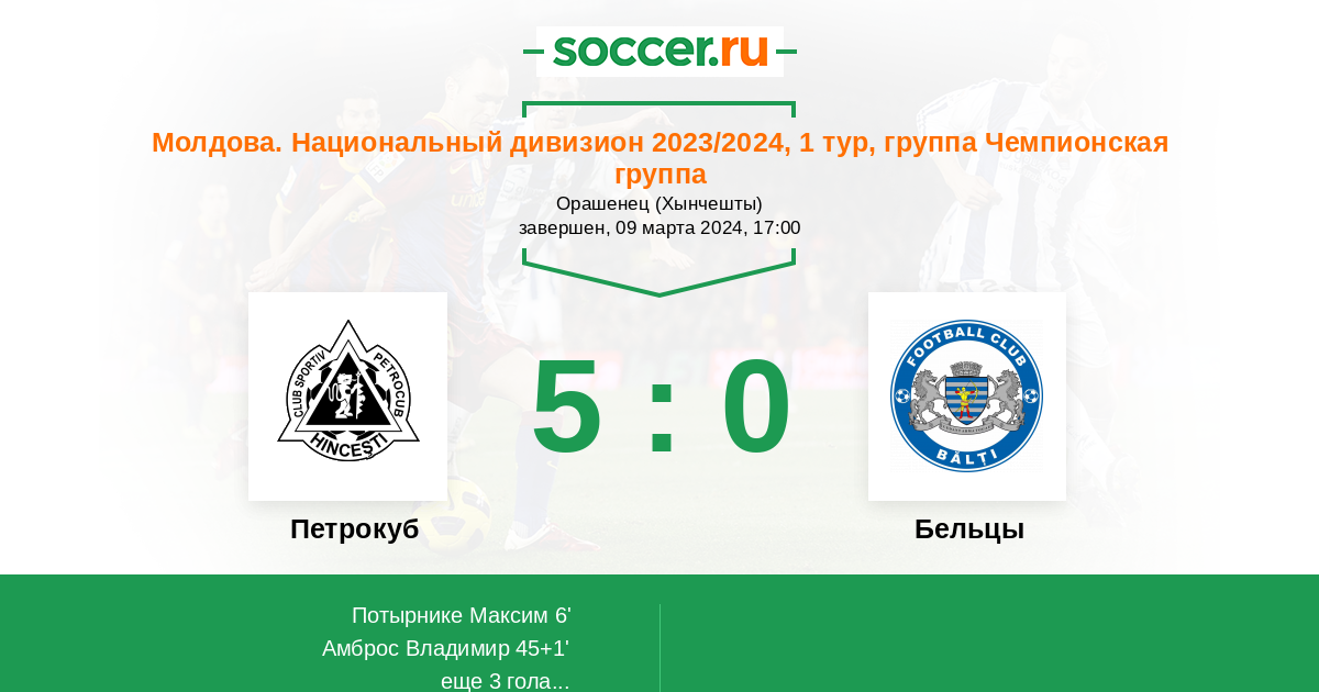 Молдова. Национальный дивизион 15.09.2024 Бельцы Логотип футбольный клуб Бельцы 2:1 Логотип футбольный клуб Петрокуб (Хынчешты) Петрокуб