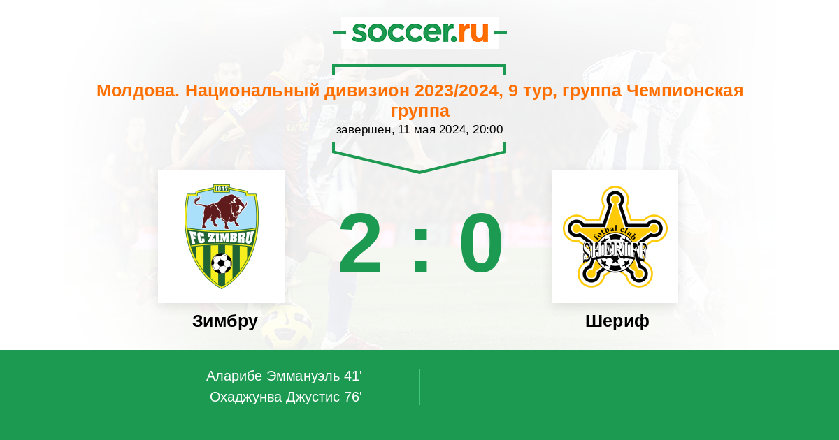 Молдова. Национальный дивизион 06.05.2023 Шериф Логотип футбольный клуб Шериф (Тирасполь) 0:0 Логотип футбольный клуб Зимбру (Кишинев) Зимбру