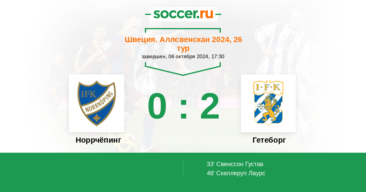Швеция. Аллсвенскан 25.07.2022 Норрчёпинг Логотип футбольный клуб Норрчёпинг 0:2 Логотип футбольный клуб Гетеборг Гетеборг