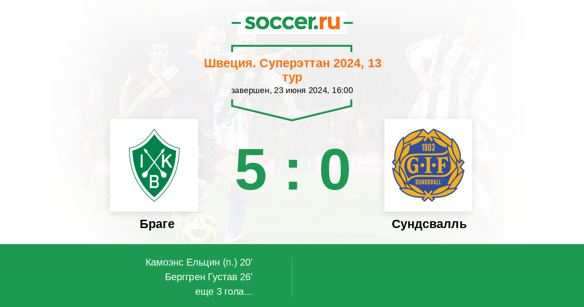 Швеция. Суперэттан 23.06.2013 Браге Логотип футбольный клуб Браге (Бурлэнге) 1:2 Логотип футбольный клуб Сундсвалль Сундсвалль