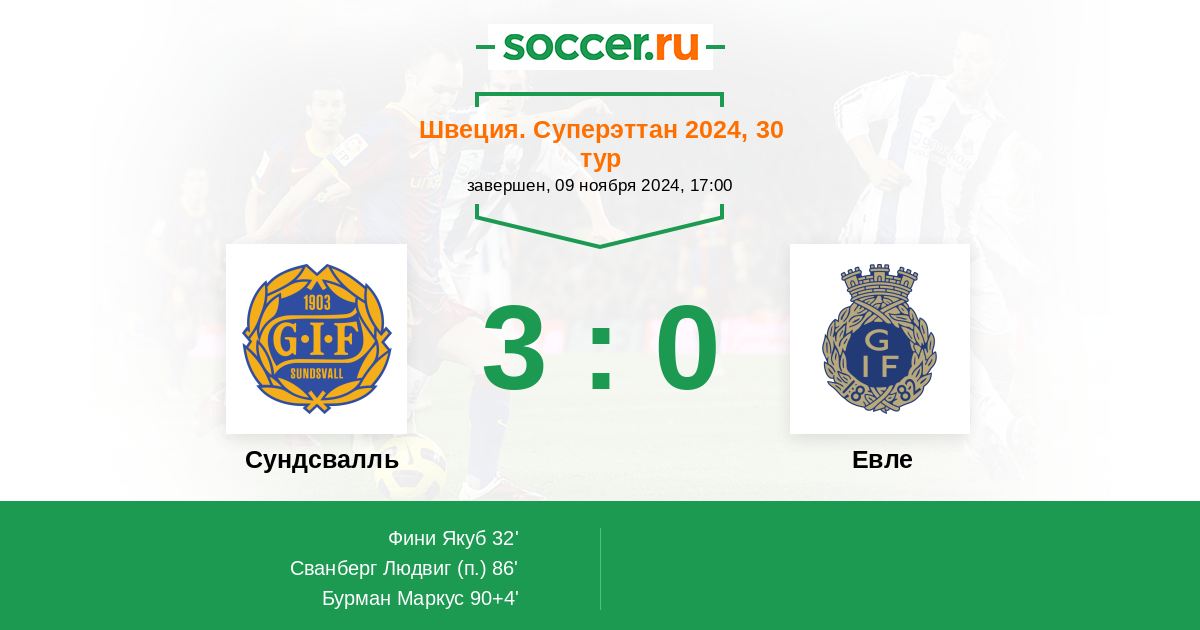 Швеция. Аллсвенскан 14.11.2010 Евле Логотип футбольный клуб Евле 2:0 Логотип футбольный клуб Сундсвалль Сундсвалль