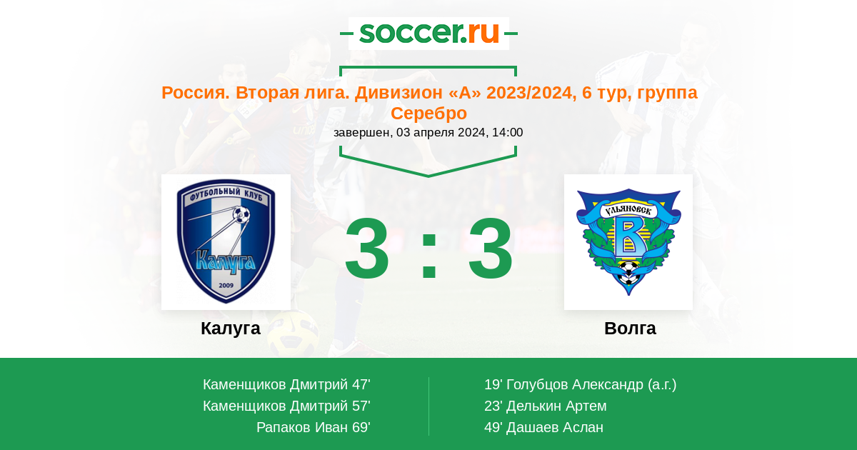 Калуга 2:1 0:0 2:1