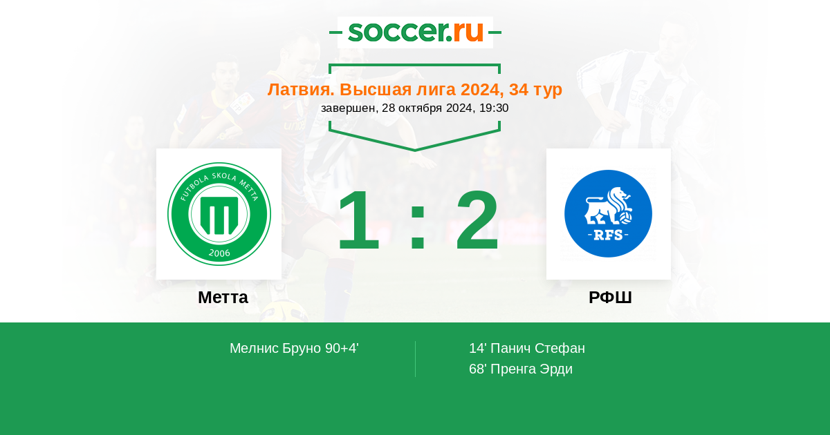 Латвия. Высшая лига 20.10.2021 Метта Логотип футбольный клуб Метта (Рига) 2:5 Логотип футбольный клуб РФШ (Рига) РФШ