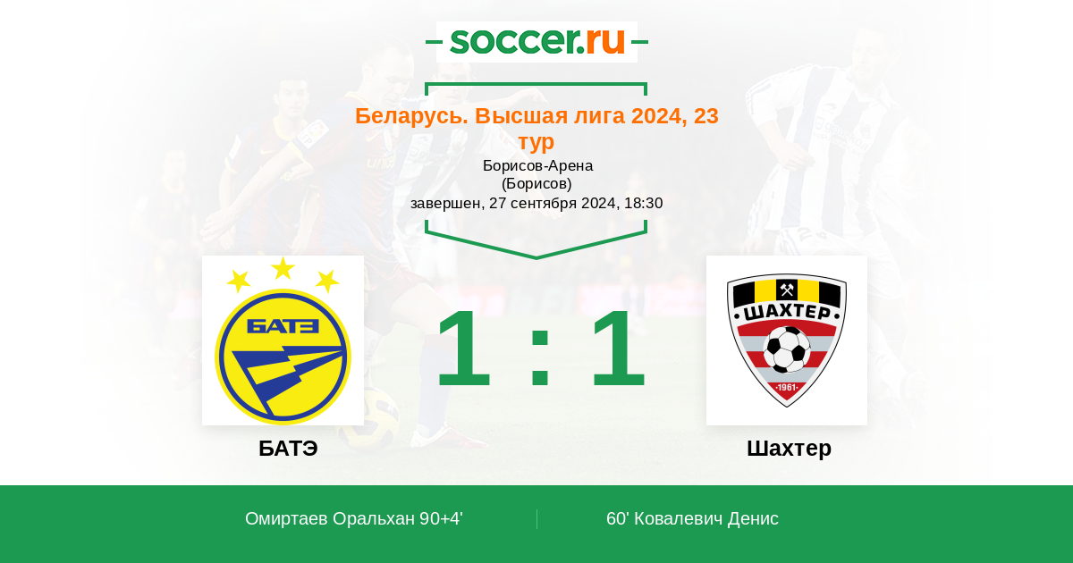 Беларусь. Высшая лига 07.11.2020 Шахтер Логотип футбольный клуб Шахтер (Солигорск) 1:1 Логотип футбольный клуб БАТЭ (Борисов) БАТЭ