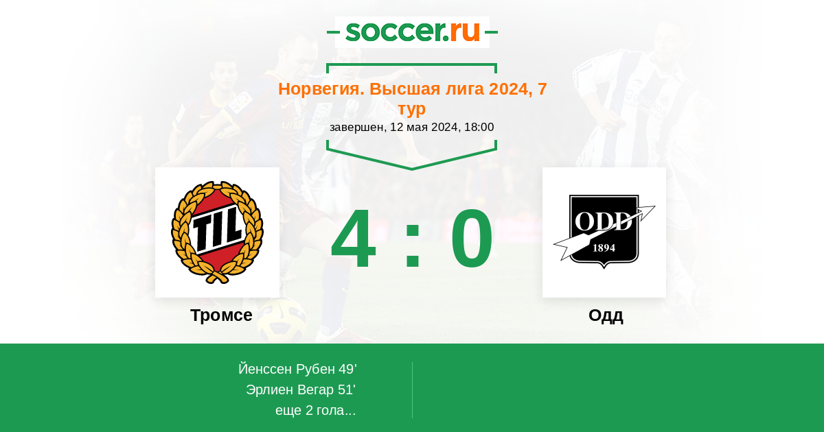 Норвегия. Высшая лига 24.06.2021 Одд Логотип футбольный клуб Одд (Шиен) 3:0 Логотип футбольный клуб Тромсе Тромсе