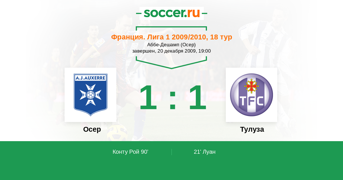 Франция. Лига 1 28.02.2009 Осер Логотип футбольный клуб Осер 1:1 Логотип футбольный клуб Тулуза Тулуза