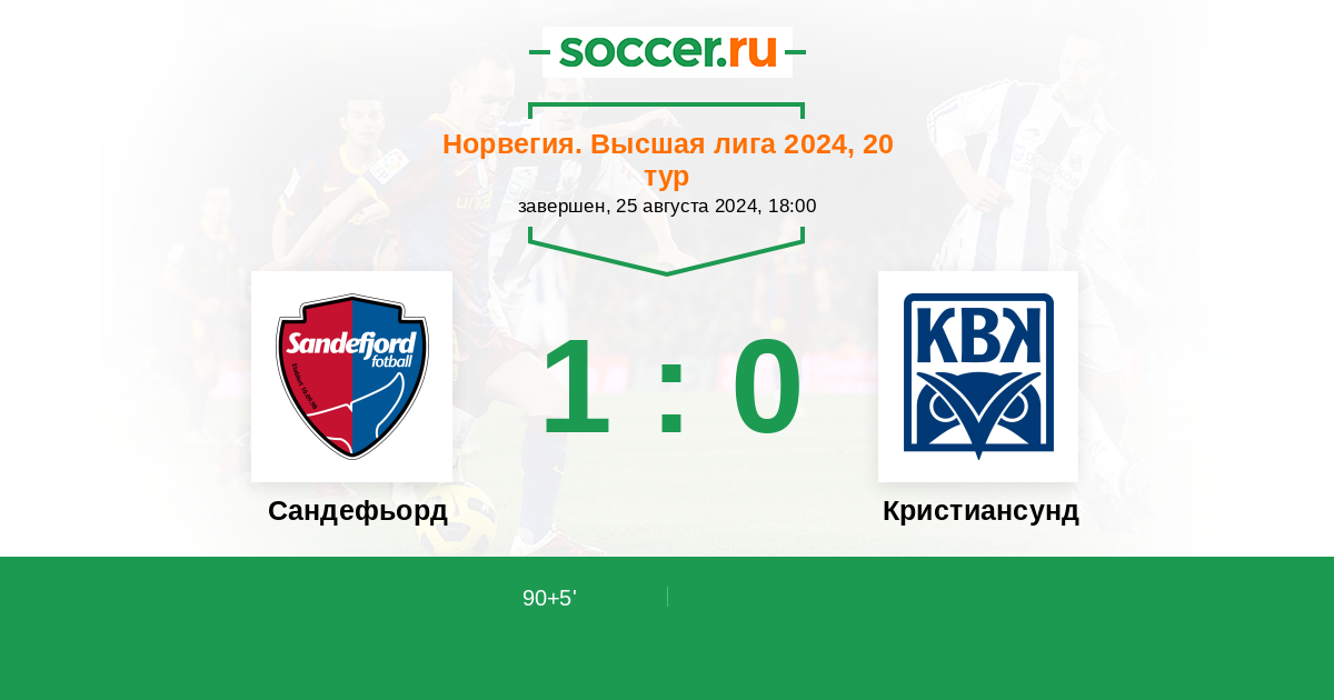 Норвегия. Высшая лига 05.10.2024 Кристиансунд Логотип футбольный клуб Кристиансунд 2:1 Логотип футбольный клуб Сандефьорд Сандефьорд