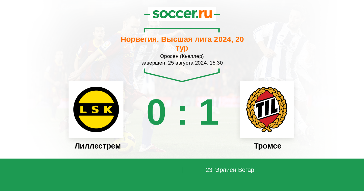 Норвегия. Высшая лига 02.07.2023 Лиллестрем Логотип футбольный клуб Лиллестрем 0:1 Логотип футбольный клуб Тромсе Тромсе