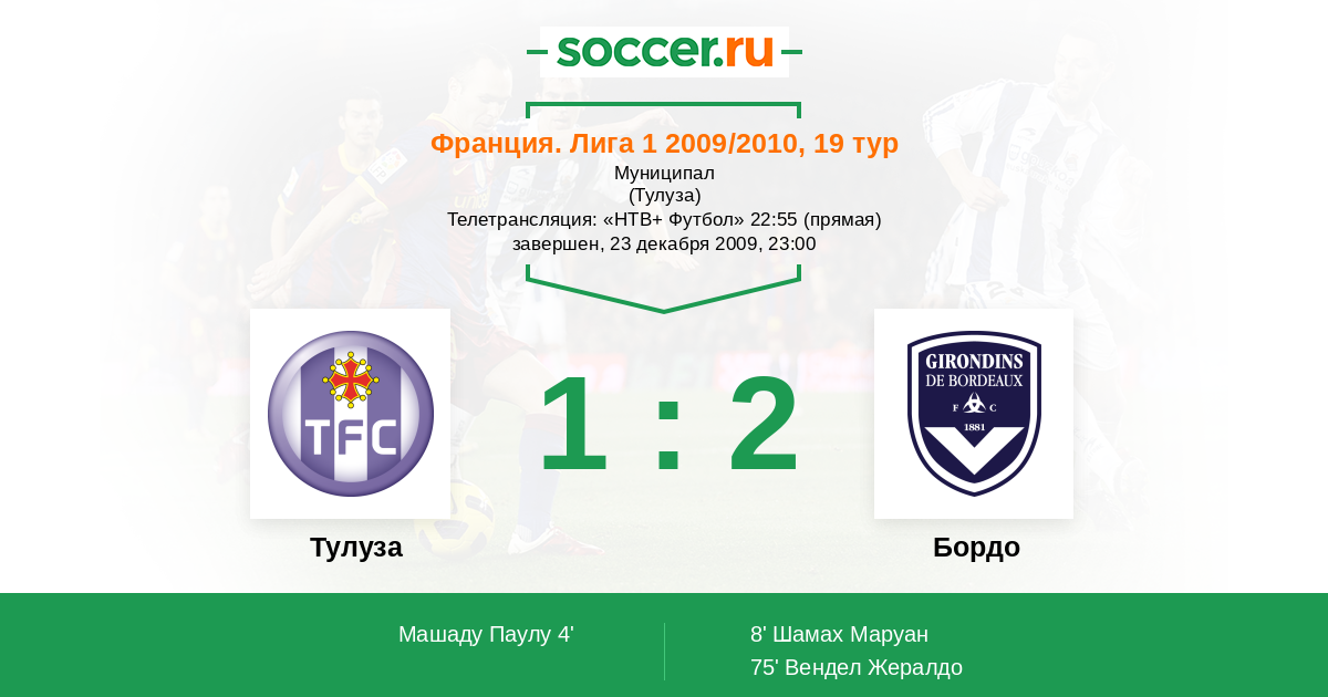 Франция. Лига 1 02.05.2010 Бордо Логотип футбольный клуб Бордо 1:0 Логотип футбольный клуб Тулуза Тулуза