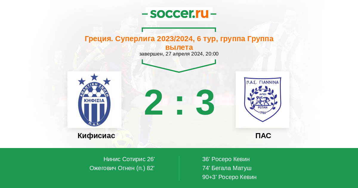 Кифисиас 4:5 4:2 0:3
