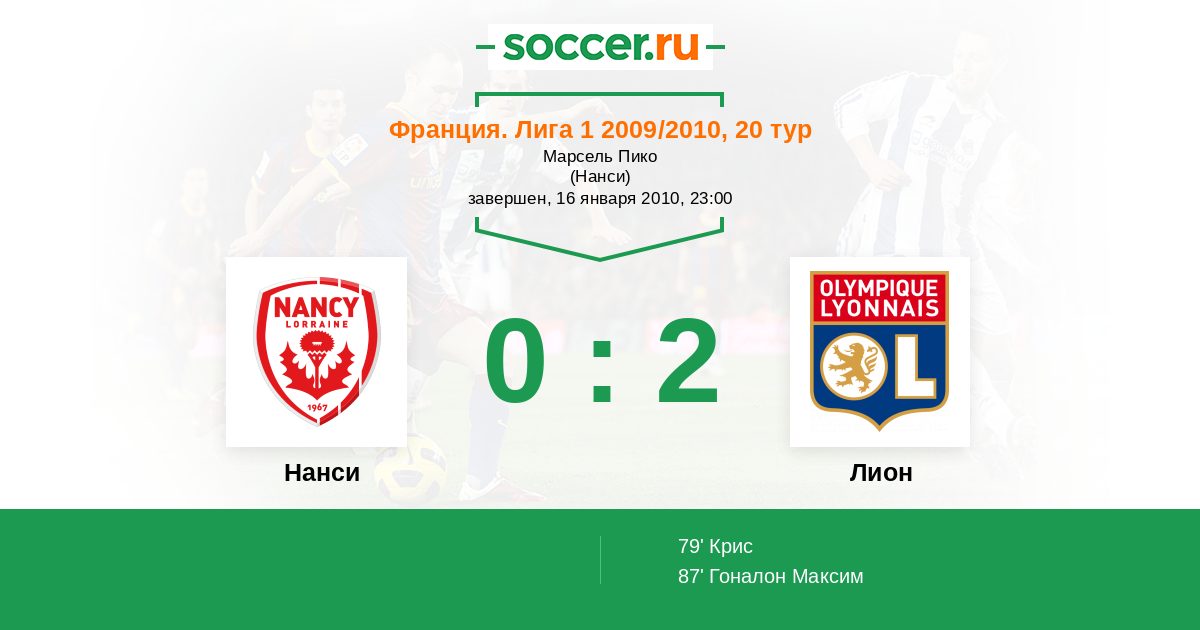 Франция. Лига 1 18.02.2011 Лион Логотип футбольный клуб Лион 4:0 Логотип футбольный клуб Нанси Нанси