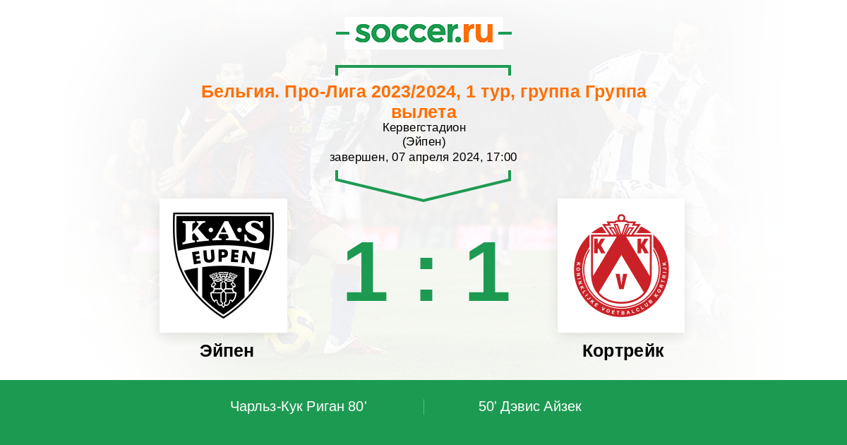 Бельгия. Про-Лига 08.04.2023 Кортрейк Логотип футбольный клуб Кортрейк 0:0 Логотип футбольный клуб Эйпен Эйпен